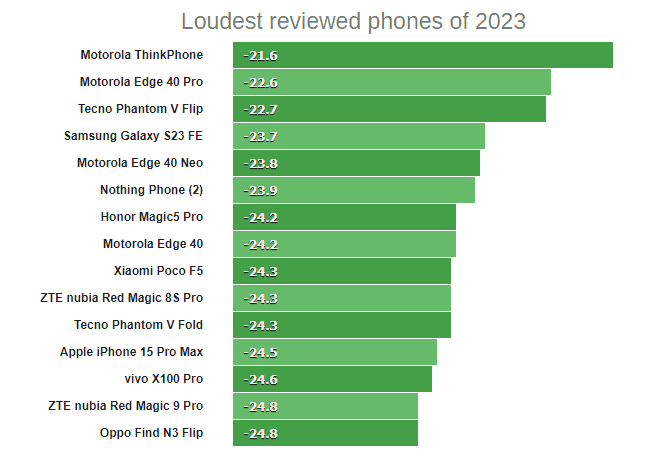 أيضًا فقط للتوضيح، الهاتف الأعلى صوتًا لا يعني أن الهاتف يتمتع بأفضل جودة مكبرات الصوت، هناك اختلاف بين حجم الصوت والجودة، وما تم اختياره هنا هو الحجم فقط.