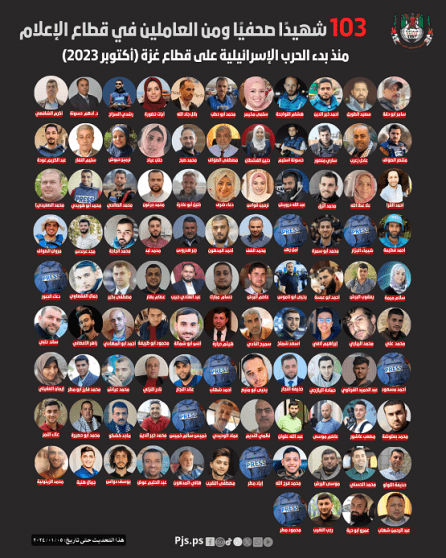 وباستشهاد الشافعي يرتفع عدد الشهداء الصحفيين إلى 103 وفق النقابة.