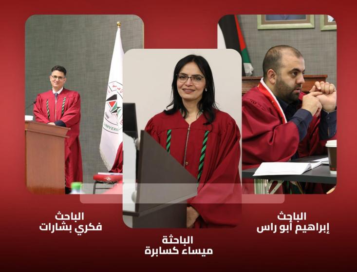 وأشرف على الأطروحة د. عماد فشافشة، وشملت لجنة الممتحنين كلا من: د. جمال قدومي و د. احمد البطران و د. بسمة سلامة.