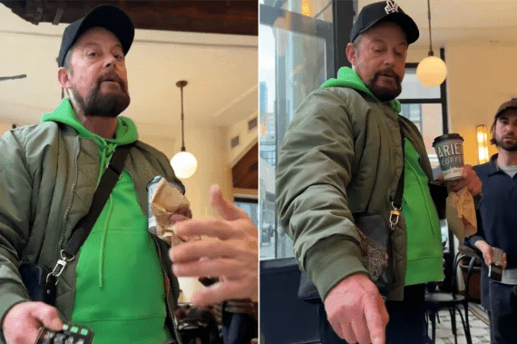 في المقابل، هدد الرجل صانعة المحتوى بأنها إن لم تخفض هاتفها وتتوقف عن تصوير التحرش بها فسوف يستدعي الشرطة باعتبار الملصق معاديا للسامية كما يدعي، ولم يخرج من المقهى إلا بعد إلحاح العمال واسترداد ثمن قهوته.