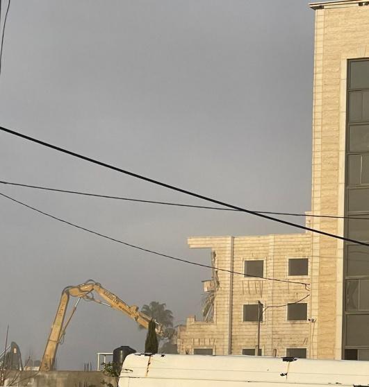 وقال شهود عيان، إن قوات الاحتلال شرعت بهدم البناية التي تبلغ مساحة كل طابق منها 300 متر مربع، منذ الساعة السادسة صباحا، ولا تزال عملية الهدم متواصلة حتى الساعة.