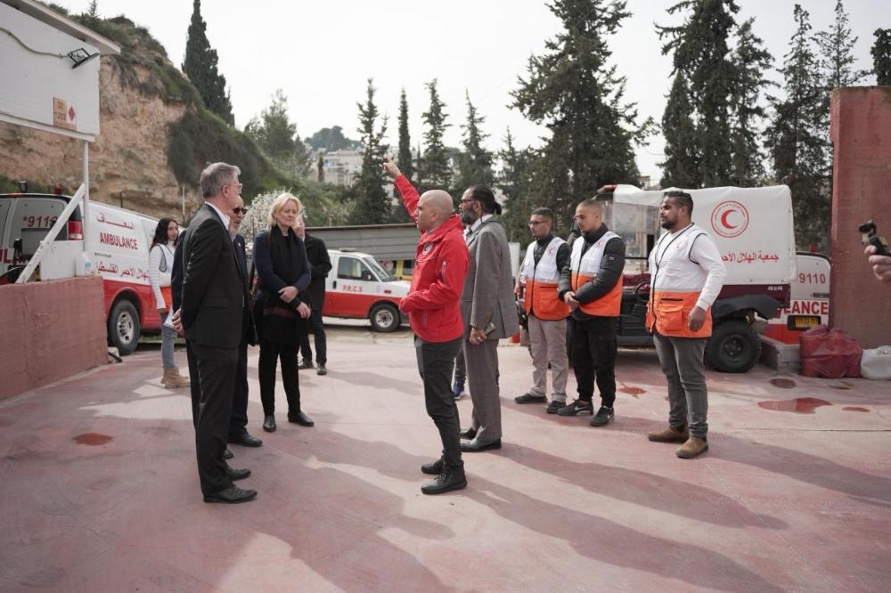 هدفت الزيارة لدعم كوادر "الهلال الاحمر" والاطلاع على الأوضاع في جمعية الهلال الأحمر الفلسطيني في القدس.