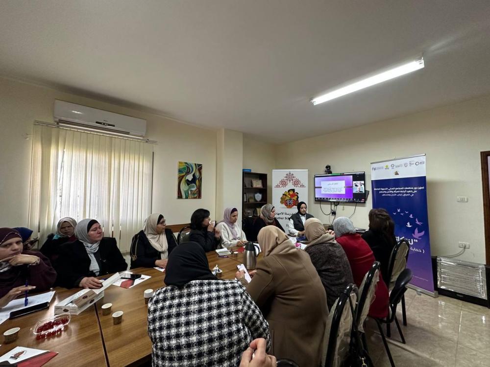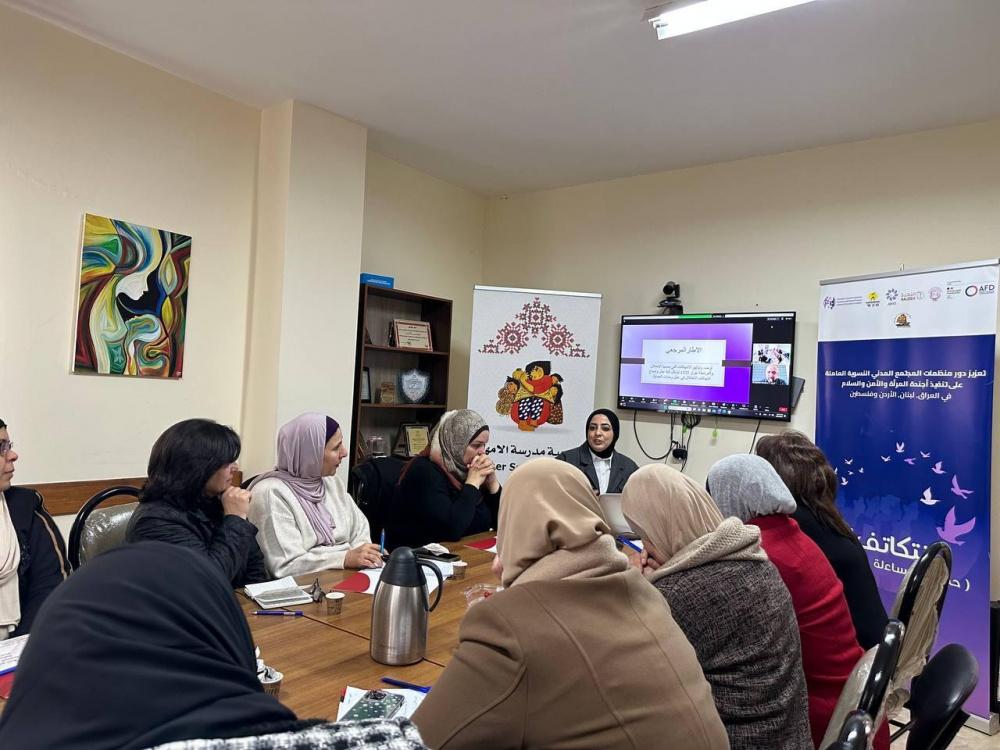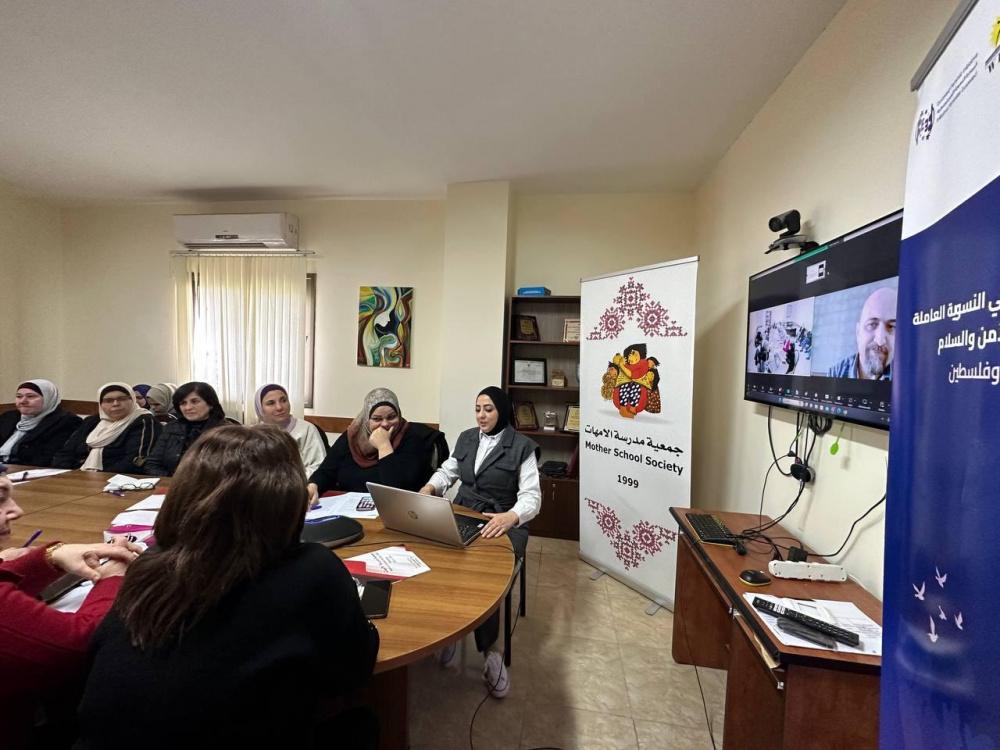 بدورها قدمت منسقة المبادرة،الاستاذة بسمة شريم عرضا تقديما حول اهم مخرجات الميادرة ، واكدت ان هذه المبادرة تأتي في اطار برنامج التمكين الحقوقي الذي تنتهجه جمعية مدرسة الامهات منذ عام 2016 والذي يهدف الى الحد من الانتهاكات الواقعة على النساء ، واوضحت انه من خلال المبادرة تم اعداد استمارة توثيق خاصة حسب المعايير الدولية للرصد والتوثيق اكدت انه تم رصد 195 انتهاك لاجندة المراة زالسلام والامن عبر وحدات الحماية في 9 محافظات في الضفة واضافت ان الجمعية شكلت شبكة من المدافعات عن حقوق الانسان تلقين 60 ساعة تدريبية حول اليات الرصد والتوثيق لانتهاكات اجندة المراة والسلام والامن ،كما وانه من خلال المبادرة تم اصدار ورقة موقف حول اثر الاحتلال على السلم الاهلي في فلسطين واضافت انه تم الوصول الى 530 امراة على المستوى القاعدي في جلسات رفع الوعي بقرار 1325
