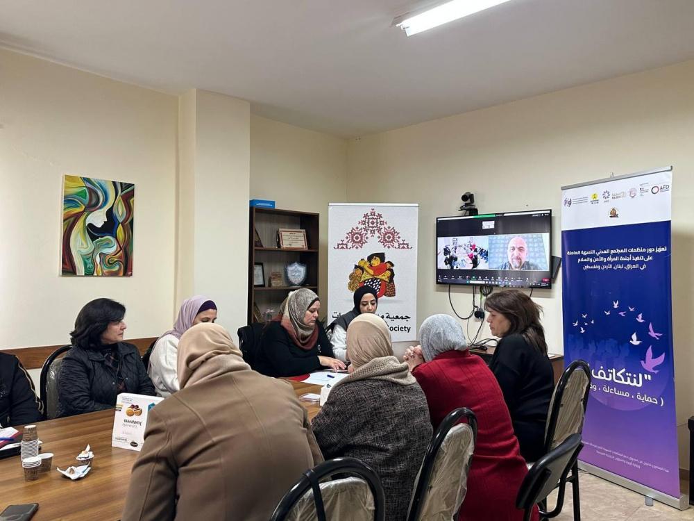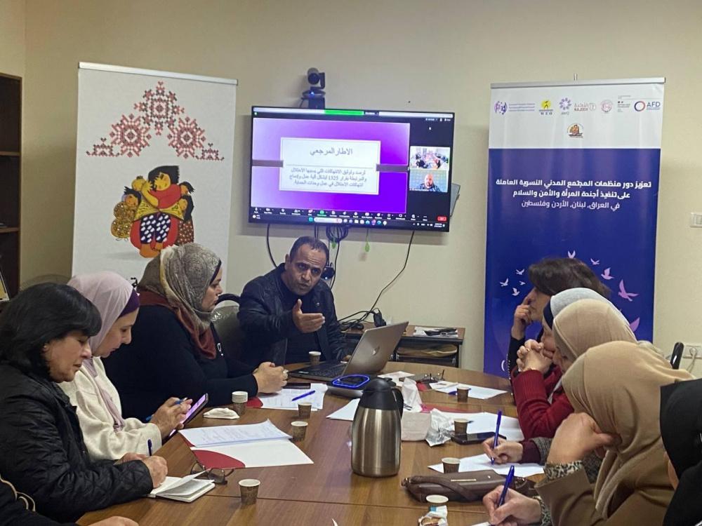 تضمنت الجلسة مداخلة من الاستاذة ايمان جودة ،منسقة وحدة اريحا ،بدأت وحدات الحماية رحلة الرصد والتوثيق في المحافظات خلال شهر 12/2023 مع النساء والفتيات ، وكانت الانتهاكات متزايدة يوميا وكان الاحتلال استوحش في الفترة الحالية بشكل اكثر ، تمكنت وحدات الحماية من رصد 195 انتهاك بحق اجندة المراة والسلام والامن ، كان من الملاحظ اختلاف طبيعة الانتهاكات وتشابهها في العديد من المحافظات حيث كان من الملاحظ انه في محافظات شمال الضفة الغربية "كانت الانتهاكات متركزة بجانب الاقتحامات الليلة ، الاعتقالات ،بالاضافة الى المعاملة الحاطة بالكرامة وانتهاك الخصوصية للعديد من النساء بالاضافة الى حرية التنقل والحركة ،كانت الانتهاكات ممارسة من جيش الاحتلال الاسرائيلي وفي محافظة نابلس تحددا كان اعتداء من المستوطنين مرصود بشكل واضح وبالتالي كان انتهاك واضح بحق السلامة الجسدية ،وبحق حرية السكن الآمن والعديد من الجوانب اما المحافظات الجنوبية ،كانت اعتداءات المستوطنين متكررة وواضحة ، والحد من التنقل والحركة .