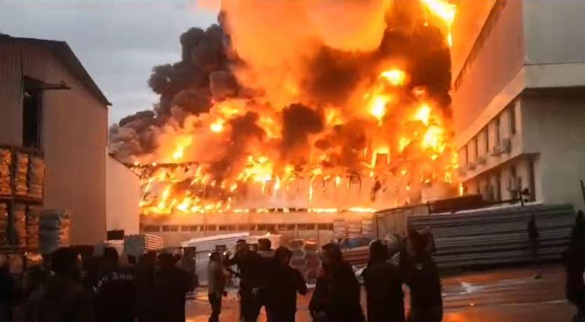 حريق ضخم في مصنع للمواد البلاستيكية بمدينة الخليل