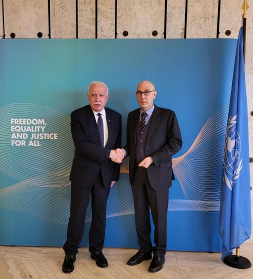 الوزير د.المالكي يطالب المفوض السامي لحقوق الانسان بتفعيل ادوات المساءلة وإعادة الفريق الدولي إلى فلسطين