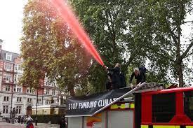 نشطاء يرشون طلاء أحمر على مبنى حكومي بريطاني احتجاجاً على حرب اسرائيل على ف غزة
