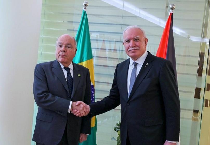 وأطلع الوزير المالكي نظيره على آخر المستجدات على الساحة الفلسطينية واستمرار حرب الإبادة الجماعية على قطاع غزة لستة أشهر، يقتل فيها يوميا مئات من الفلسطينيين المدنيين الأبرياء، معظمهم من النساء والأطفال، والاستمرار في تدمير البنية التحتية والمستشفيات والمدارس والجامعات وكل أشكال الحياة في رسالة واضحة من نتنياهو والحكومة الإسرائيلية وهي القضاء على قطاع غزة وجعله مكانًا غير صالح للسكن بعد الحرب، وأكد على أن نتنياهو لا يريد حلًا ولا يهمه إرجاع الرهائن، ويصر على اقتحام رفح بغض النظر عن طلبات بايدن وغيره من قادة العالم عدم الإقدام على هذه الخطوة، حيث تشكل خطورة كبيرة ومأساة أخرى للفلسطينيين في رفح وهي أكثر مدن العالم كثافة بالسكان، وأضاف المالكي أن إسرائيل، القوة القائمة بالاحتلال، تستخدم المجاعة كسلاح حرب مع منعها المستمر من دخول المساعدات الإنسانية، ونقص المياه والأدوية، وعبر المالكي عن خيبة أمله من مجلس الأمن الذي خذل فلسطين والبرازيل والإنسانية فلهذه اللحظة كل الجهود التي بذلت لا شيء منها ترجم إلى أفعال لإيقاف الحرب.