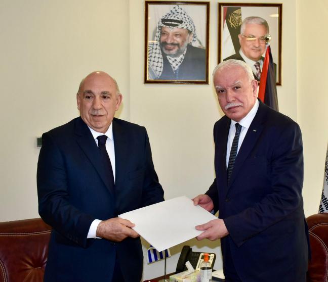 تسلم معالي وزير الخارجية والمغتربين د. رياض المالكي، اليوم الخميس في مقر الوزارة، نسخة من أوراق اعتماد السفير الجديد لجمهورية الأواغواي الشرقية والمعتمد لدى دولة فلسطين السيد فيرناندو أرويو.