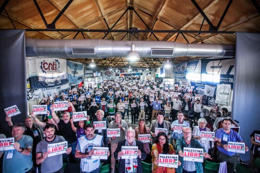 وقام أكثر من 370 من أعضاء المؤتمر (الممثلين عن جميع المقاطعات والمدن الأرجنتينية)، إضافة إلى العشرات من أعضاء الوفود النقابية المدعوة الذين حضروا من دول أميركا اللاتينية، وأوروبا وإفريقيا، برفع لافتات تطالب بالحرية لفلسطين، وبالوقف الفوري لإطلاق النار والإبادة الجماعية.