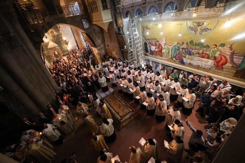 وترأس بطريرك القدس للاتين الكاردينال بييرباتيستا بيتسابالا، قدّاس عيد الفصح في كنيسة القيامة، بالبلدة القديمة في مدينة القدس، بمشاركة لفيف من الأساقفة والكهنة والرهبان والراهبات، وعدد محدود من المصلين، غالبيتهم من مدينة القدس ومن أراضي الـ48، بعد أن حرم الاحتلال الإسرائيلي آلاف المواطنين المسيحيين من محافظات الضفة الغربية من الوصول إلى المدينة المقدسة.