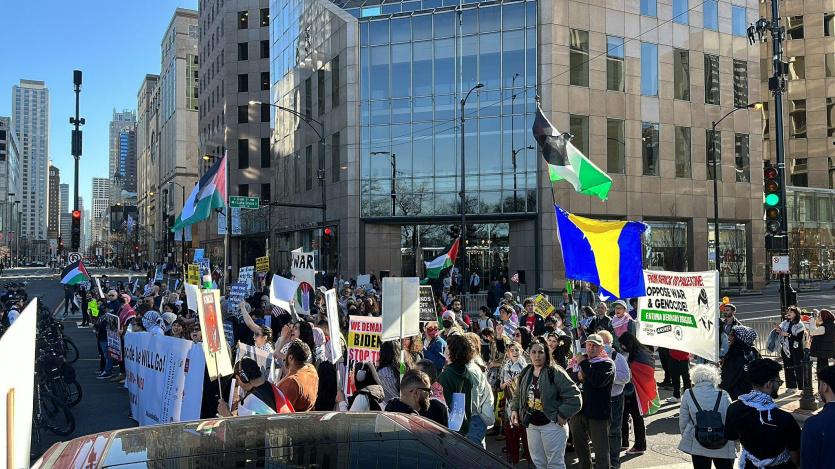 شيكاغو: نشطاء يتظاهرون ضد استمرار دعم الرئيس بايدن للعدوان الإسرائيلي على غزة