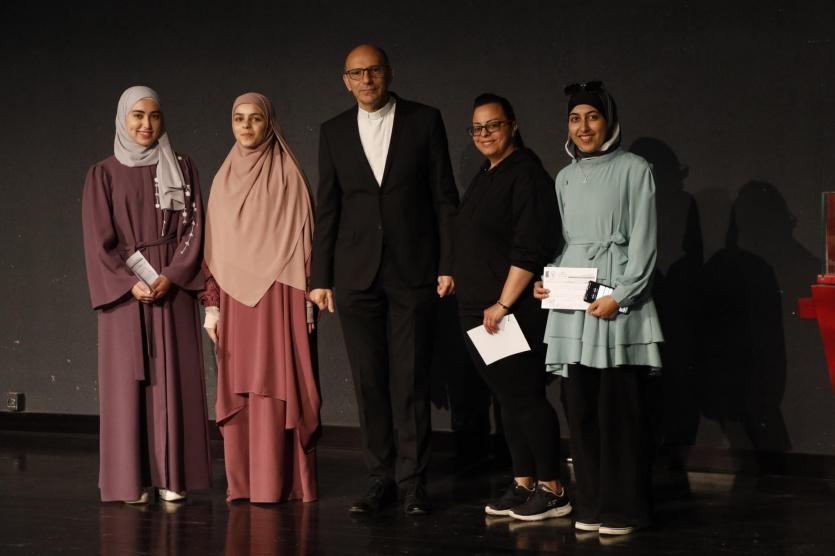 واختتم كلمته بشكر لجنة المنح في الجامعة على جهودهم والتي تضم كل من أ. منار ادريس عميد شؤون الطلبة، أ. ايهاب مصلح عميد القبول والتسجيل، أ. ايليا قيسية المدير المالي.