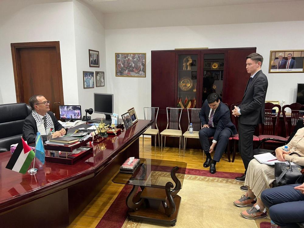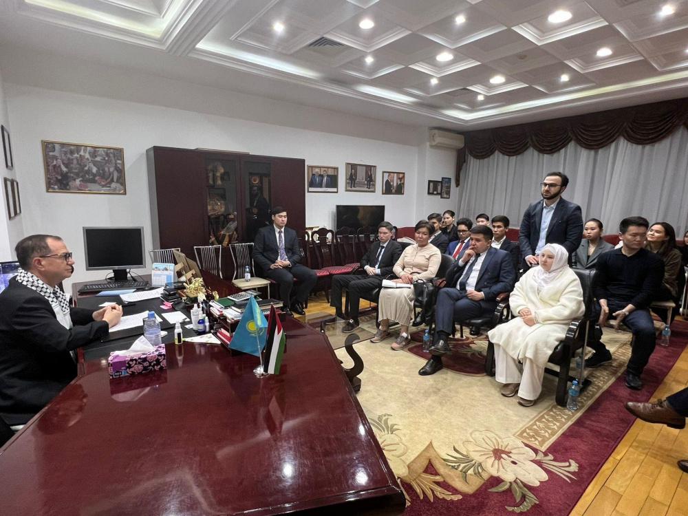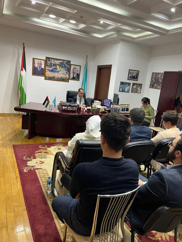 ألقى السفير الفلسطيني عميد السلك الدبلوماسي العام في كازاخستان، د.منتصر أبوزيد، محاضرة أمام أعضاء النادي الدبلوماسي الكازاخستاني لإطلاعهم على الأوضاع الفلسطينية بعد مرور أكثر من 200 يوماً على العدوان الإسرائيلي الغاشم على قطاع غزة وكافة المحافظات الفلسطينية.