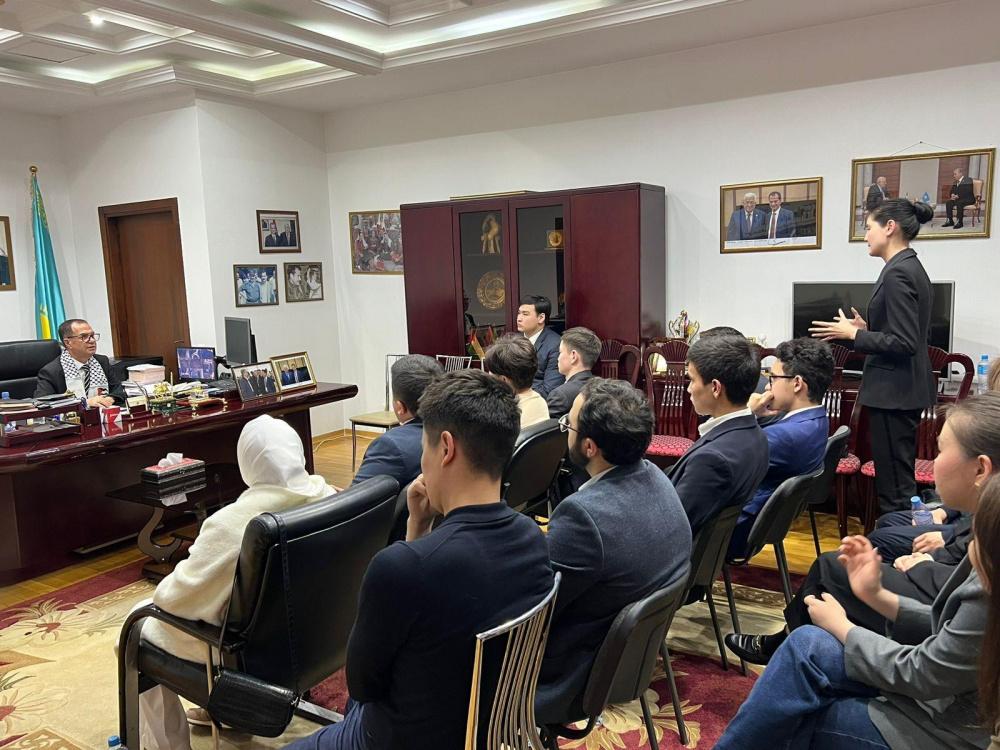 السفير أبوزيد يلقي محاضرة أمام أعضاء النادي الدبلوماسي الكازاخستاني