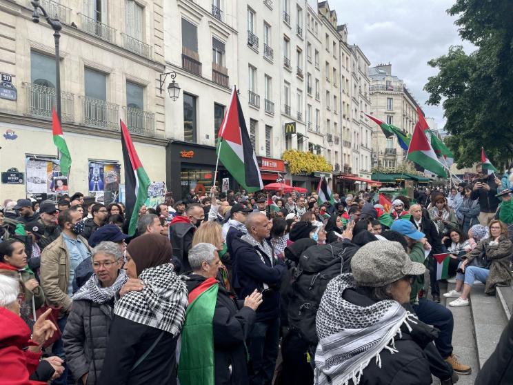 وتجمع المشاركون من المتضامنين مع فلسطين في المنطقة الأولى بباريس، وطالبوا بوقف العدوان الإسرائيلي على قطاع غزة المستمرة منذ 212 يوما.