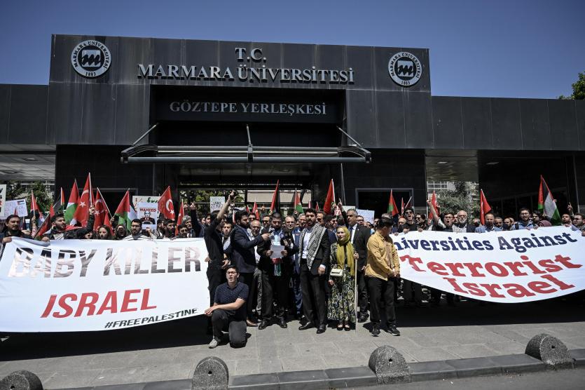 نظم طلاب وأعضاء هيئة التدريس في جامعة مرمرة بمدينة إسطنبول، اليوم الثلاثاء، مسيرة تضامنية مع فلسطين للتنديد بالجرائم التي ارتكبتها إسرائيل في غزة.