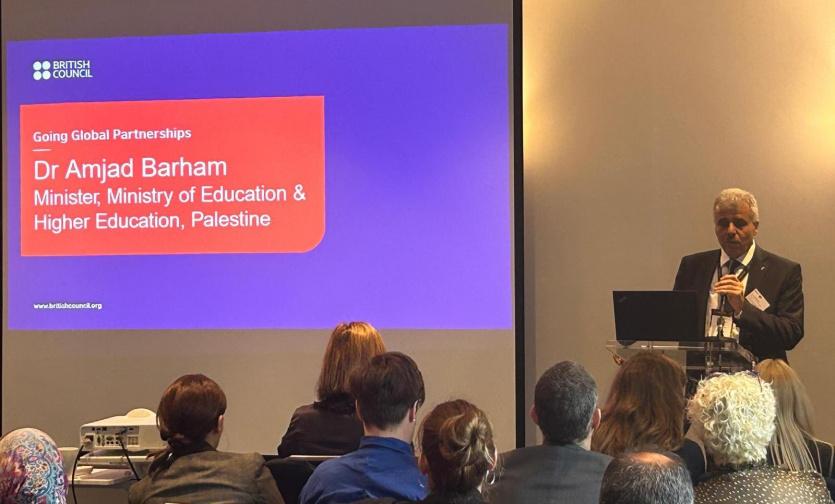 وقد مثّل فلسطين في هذا المنتدى؛ وزير التربية والتعليم العالي د. أمجد برهم، والوكيل د. نافع عساف، بمشاركة سفير دولة فلسطين في لندن د. حسام زملط، ومدير المجلس الثقافي البريطاني في فلسطين مارتن دالتري.
