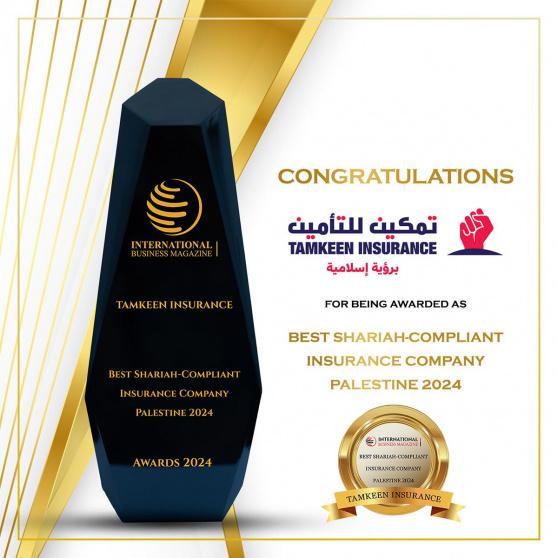 حصلت شركة تمكين الفلسطينية للتأمين على جائزة أفضل شركة تأمين تعمل وفقاً لأحكام الشريعة إلاسلامية في فلسطين، الصادرة عن مجلة الأعمال الدولية International Business Magazine، وهي مجلة دولية مقرها الإمارات العربية المتحدة، تعتمد برامج جوائز سنوية للأداء المتميز للشركات ومؤسسات الأعمال على مستوى العالم و تشمل الولايات المتحدة الأمريكية، أوروبا، الشرق الأوسط، آسياً،و إفريقيا، في كافة القطاعات وعلى وجه الخصوص قطاعات: التأمين، الصيرفة والخدمات الصحية.