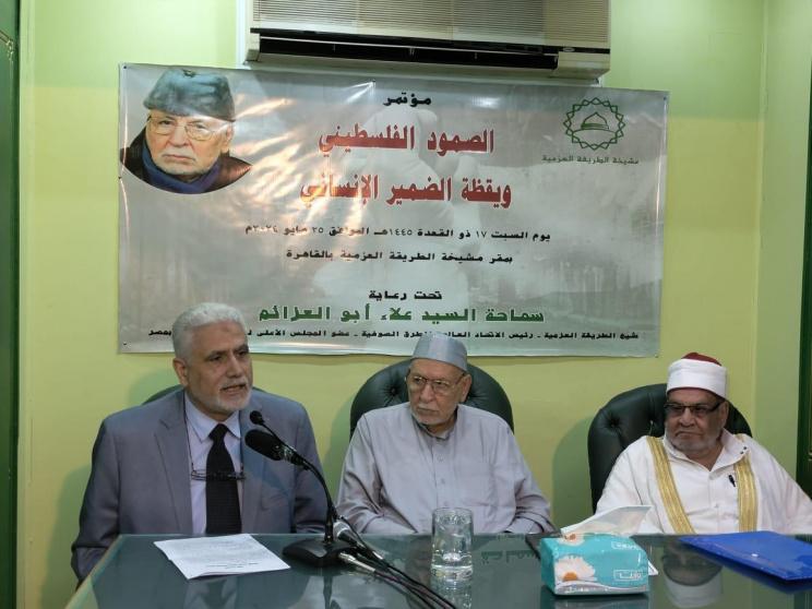 عقدت مشيخة الطريقة العزمية امس السبت مؤتمرًا بعنوان (الصمود الفلسطيني ويقظة الضمير الإنساني)، برعاية وحضور السيد علاء أبي العزائم شيخ الطريقة العزمية ورئيس الاتحاد العالمي للطرق الصوفية، والسيد أحمد علاء أبي العزائم نائب عام الطريقة العزمية.