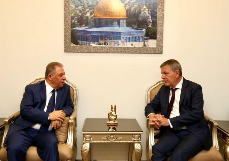 بحث سفير دولة فلسطين لدى الجمهورية اللبنانية أشرف دبور، اليوم الاثنين، مع المفوض العام لوكالة الأمم المتحدة لغوث وتشغيل اللاجئين الفلسطينيين "الأونروا" فيليب لازاريني، الضغوط التي تمارس على الوكالة، بحضور مديرة شؤون الأونروا في لبنان دوروثي كلاوس، ورئيسة الاتحاد العام للمرأة الفلسطينية فرع لبنان آمنة جبريل.