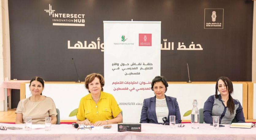 نظم بنك فلسطين بالشراكة مع مؤسسة "نُعلِم لفلسطين" حلقة نقاش حول واقع التعليم المدرسي في فلسطين تحت عنوان: "احتياجات التعليم المدرسي في فلسطين"، في مقر الإدارة العامة، بمدينة رام الله، بحضور د. تفيدة الجرباوي رئيسة لجنة الاستدامة في مجلس إدارة بنك فلسطين، ولفيف من الشركاء، وممثلين عن وزارة التربية والتعليم، والجامعات الفلسطينية، ومدراء المدارس، إلى جانب عدد من المختصين في مجال التعليم.