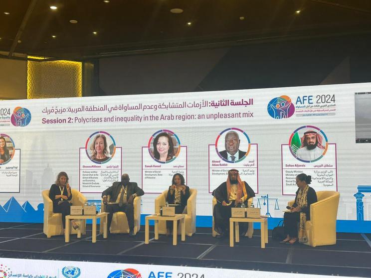 شاركت دولة فلسطين ممثلة بوزارة التنمية الاجتماعية، في أعمال المنتدى العربي الثالث من أجل المساواة تحت عنوان "التصدي لعدم المساواة في ظل الأزمات المتعددة"، والذي أقيم في العاصمة المصرية القاهرة لمدة يومين، وترأست وفد فلسطين المشارك وزيرة التنمية الاجتماعية د. سماح أبو عون حمد هذا وتم تنظم المنتدى بالتعاون بين لجنة الأمم المتحدة الاقتصادية والاجتماعية لغربي آسيا "الإسكوا" ومؤســـســـة ساويرس للتنمية الاجتماعية ومجموعة "باثفايندرز" وذلك تحت رعاية وزيرة التضامن الاجتماعي المصرية نفين القباج، وشارك في أعمال المنتدى الأمين التنفيذي للإسكوا ووكيلة الأمين العام للأمم المتحدة د.رولا دشتي ومديرة مجموعة السكان والعدالة بين الجنسين والتنمية الشاملة للإسكوا مهريناز العوضي ، والمديرة التنفيذية لمؤسسة ساويرس للتنمية الاجتماعية نورا سليم ، وعدد من الوزراء وممثلي الدول العربية وممثلي الوفود المشاركة في المنتدى.