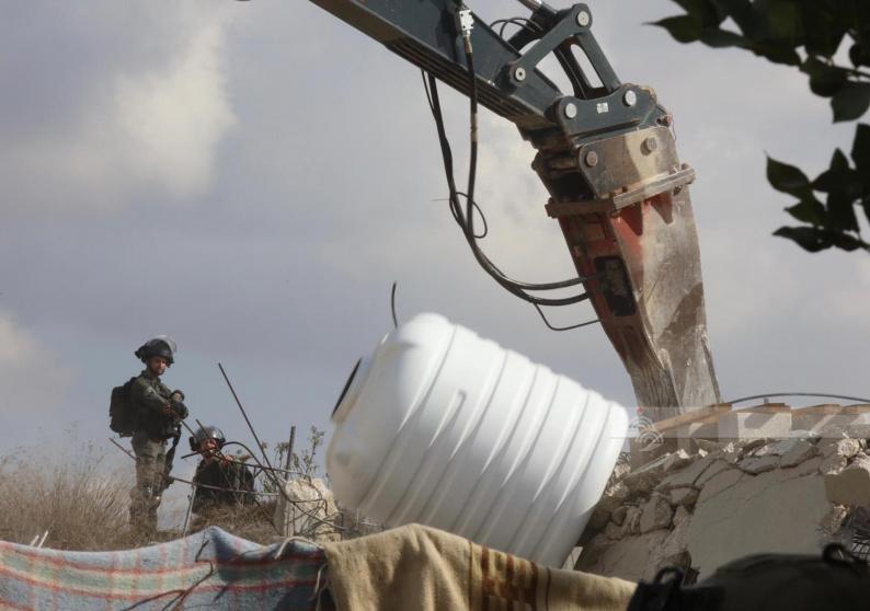 وأفاد رئيس المجلس القروي عازم حج محمد، بأن قوات الاحتلال ترافقها جرافة هدمت كرفان يعود للمواطن حكمت أحمد أبو جيش، وبركة زراعية تعود للمواطن خيري أبو جيش، بحجة أنها تقع بالمناطق المصنفة "ج".