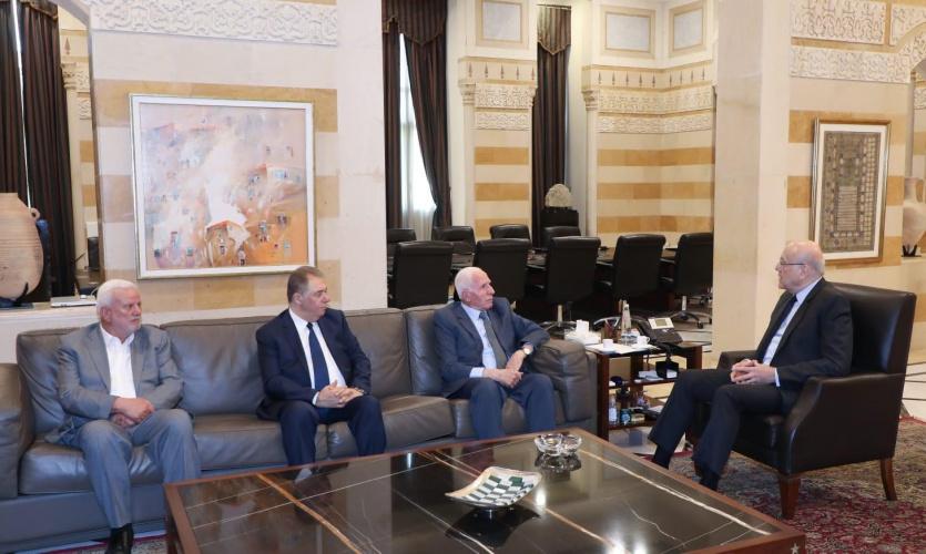 التقى عضو اللجنتين التنفيذية لمنظمة التحرير الفلسطينية والمركزية لحركة "فتح" عزام الأحمد، اليوم الخميس، في السرايا الحكومي، رئيس الحكومة اللبنانية نجيب ميقاتي، وذلك بحضور سفير دولة فلسطين لدى الجمهورية اللبنانية أشرف دبور وأمين سر حركة "فتح" وفصائل "منظمة التحرير الفلسطينية" في لبنان فتحي أبو العردات.