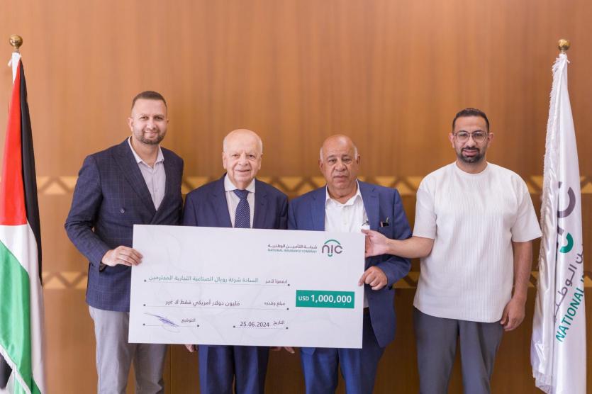 وقد تسلم رئيس مجلس إدارة شركة رويال الصناعية التجارية، الحاج نبيل الزُغير، الشيك بقيمة مليون دولار في مقر شركة التأمين الوطنية في رام الله. وأعرب عن امتنانه لشركة التأمين الوطنية (NIC) وفريقها على مبادرتهم للموافقة على طلب الشركة دفع هذا المبلغ قبل اكتمال الأوراق ومتابعتهم للحادث بمهنية عالية. وأضاف: "نحن سعداء جداً بالتعامل مع شركة التأمين الوطنية (NIC) ونؤكد أننا سنستمر في العمل مع هذه الشركة العريقة التي تعمل بمصداقية وشفافية ومهنية."