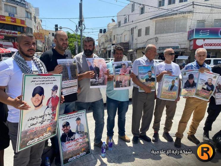 ورفع المشاركون صور الأسرى والأسيرات وشهداء الحركة الأسيرة المحتجزة جثامينهم في ثلاجات الاحتلال، ويافطات كتبت عليها شعارات منددة بالجرائم التي ترتكب بحق الأسرى، خاصة الشهادات التي خرجت من أسرى غزة وما يتعرضون له من عمليات تنكيل وفظائع ترتكب بحقهم.