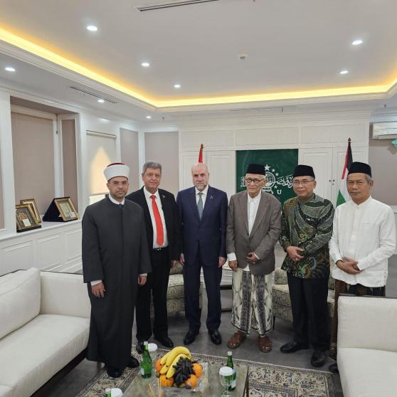 التقى سماحة الشيخ محمود الهباش قاضي قضاة فلسطين مستشار الرئيس للشؤون الدينية والعلاقات الإسلامية، في العاصمة الإندونيسية جاكرتا صباح اليوم رئيس جمعية نهضة العلماء كبرى الهيئات الدينية في أكبر دولة إسلامية بالعالم، الشيخ يحيى خليل ستاكوف بحضور عدد كبير من أعضاء الجمعية من العلماء ورجال الدين والسياسة والإعلام في إندونيسيا.