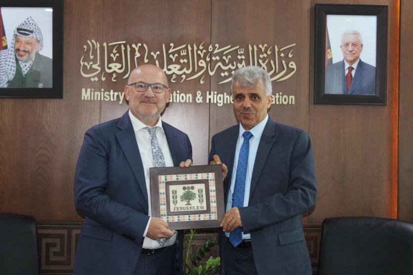كرّم وزير التربية والتعليم العالي د. أمجد برهم، اليوم، مدير المجلس الثقافي البريطاني في فلسطين مارتن دالتري؛ بمناسبة انتهاء مهامه الرسمية.