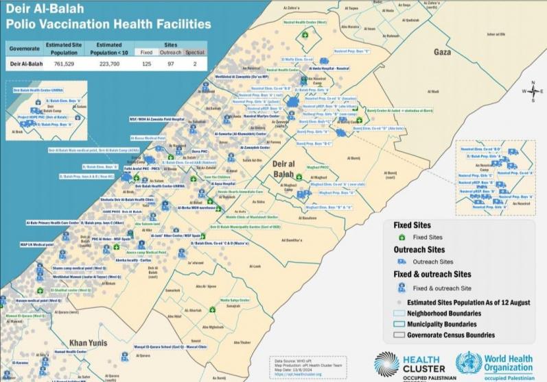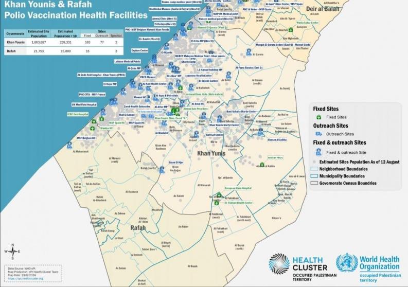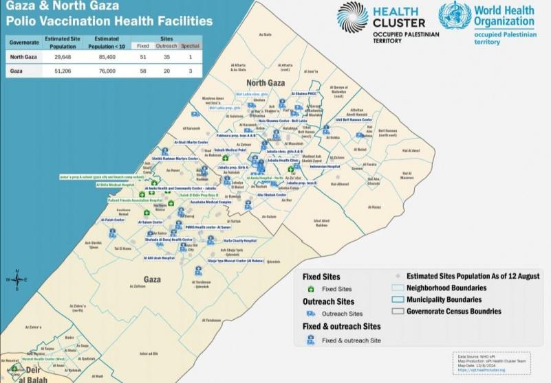 ونشرت وزارة الصحة خرائط ميدانية تبين أماكن ومراكز التطعيم، كما أرسلت رسائل نصية للمواطنين في قطاع غزة لإعلامهم بمواعيد تلقي المطاعيم.