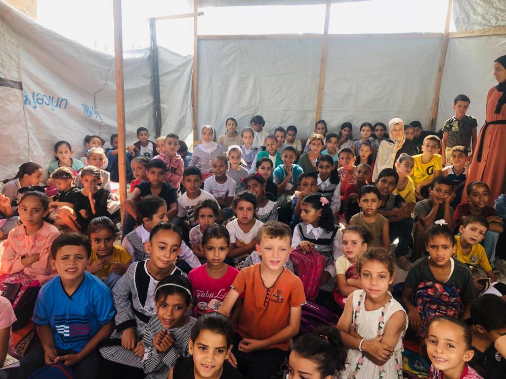 وبصوتها الطفولي تضيف: "أنا مبسوطة في الخيمة التعليمية، طريقة الأستاذة إسراء رائعة، أنا أتعلم من أجل أن أكون دكتورة في المستقبل".