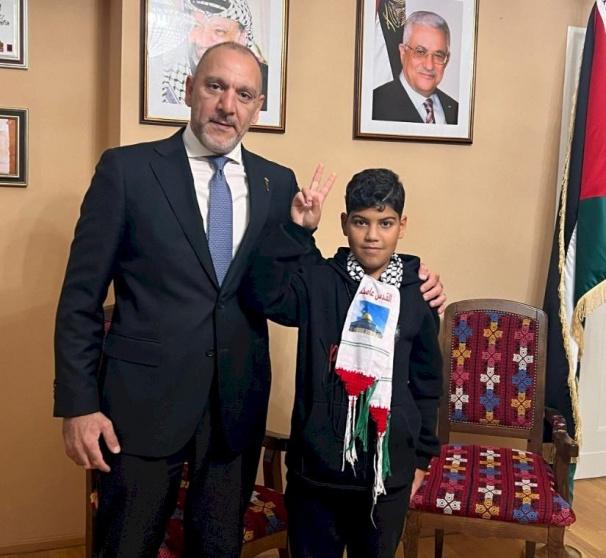 السفير ليث عرفة يستقبل الطفل "علي" الذي تعرض لملاحقة من الشرطة الألمانية قبل أيام