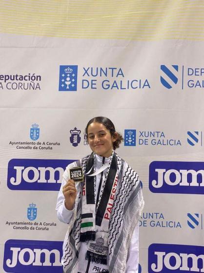 وتزيّنت مريم بشارات بالعلم الفلسطيني والكوفية الفلسطينية خلال تتويجها بالميدالية الدولية، وهي فرصة لإظهار القدرات والإنجازات الفلسطينية التي تستطيع الوصول للعالمية، رغم كل الظروف والحرب التي نعيشها.