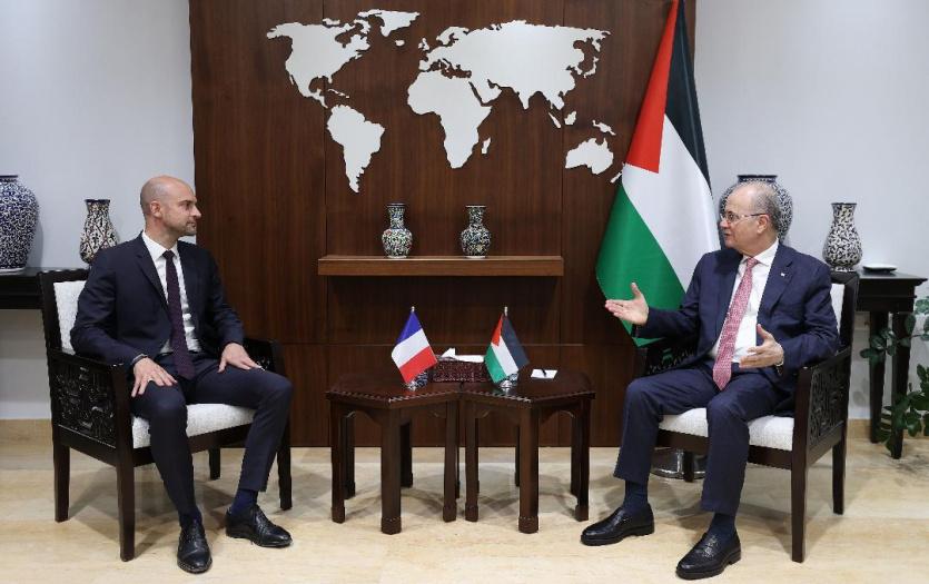 استقبل رئيس الوزراء، وزير الخارجية والمغتربين محمد مصطفى، اليوم الاثنين في مكتبه برام الله، وزير الخارجية الفرنسي جان نويل باروت، بحضور وزيرة الدولة لشؤون وزارة الخارجية والمغتربين فارسين أغابيكيان شاهين، والقنصل الفرنسي العام نيكولاس كاسيانيديس.