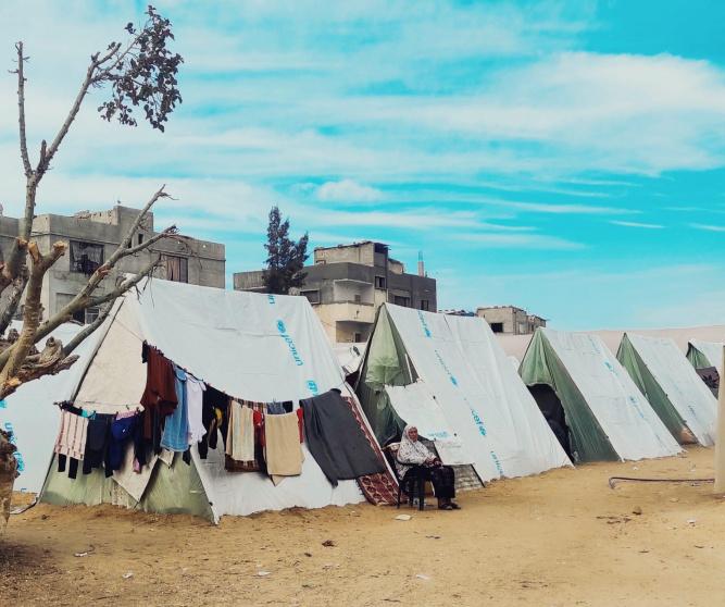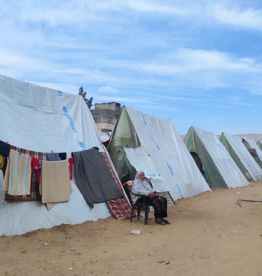 الحاجة سعدة الخطيب، مُسنة تُعاني كما غيرها الآلاف في قطاع غزة، إذ نبش النزوح أوجاعها النفسية والجسدية، على غرار ألم الفقدان والمرض وحرارة الخيام صيفا وبردها بالشتاء الذي عاد مجددا.