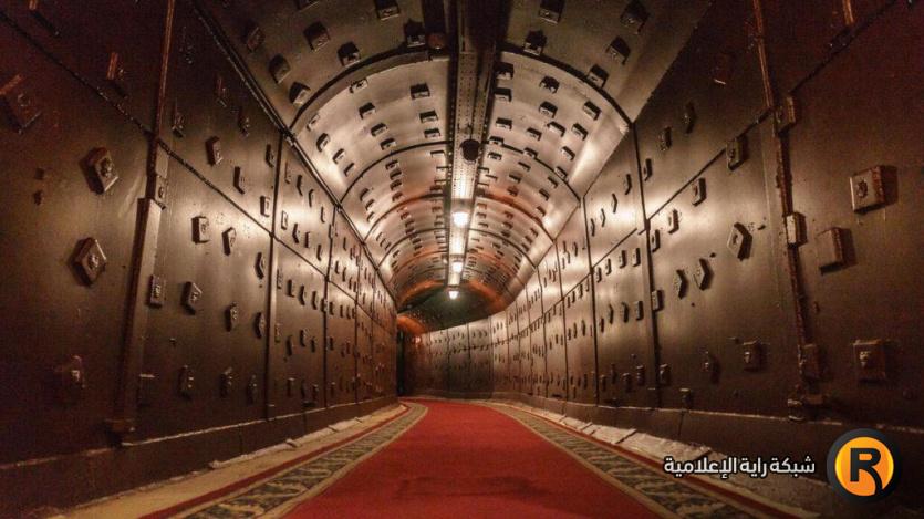 وبعد النزول إلى الطابق السفلي، ينفتح أمام الزوار ممر طويل بسجادة حمراء. وهنا يمكنك سماع ضجيج القطارات التي تمر عبر أنفاق المترو، حيث يقع المخبأ على نفس مستوى الخط الدائري لمترو موسكو.