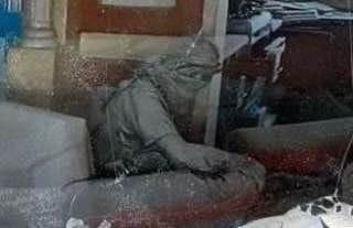 وذكر أنه "في لحظاته الأخيرة ألقى لوحًا خشبيًا على طائرة بدون طيار".