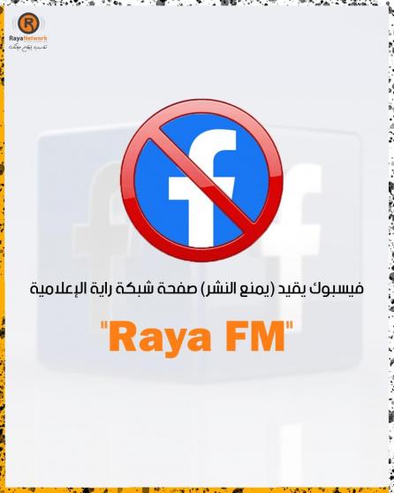 ويوم السبت الماضي، قام فيسبوك بإغلاق صفحة "Raya FM" ومنع النشر عليها بشكل كامل، تحت حجج واهية وكاذبة ومخالفة لقوانين النشر، إذ أبلغ الموقع بأن الصفحة تم تعليقها تماما "لأن بعض نشاطاتها لا تتبع قواعدنا"، وفق زعم فيسبوك.