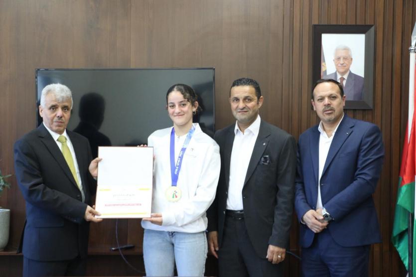 كرمت وزارة التربية والتعليم العالي؛ اليوم، بطلة العالم في الكاراتيه الطالبة مريم بشارات الحاصلة على الميدالية الذهبية في بطولة العالم للناشئين مؤخراً في إيطاليا.