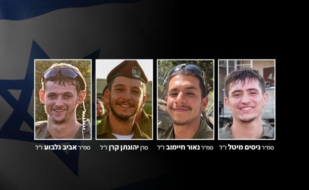وقالت مصادر عبرية إن الجنود هم: النقيب يوناتان (جوني) كيرين، والرقيب أفيف جلبوع، والرقيب نسيم ميتال، والرقيب ناعور حيموف.