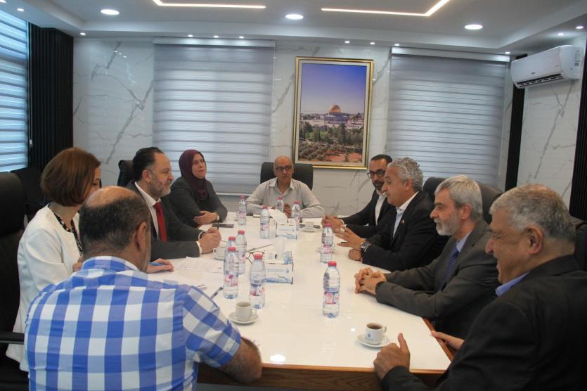 بحث رئيس سلطة المياه د. زياد ميمي اليوم مع رئيس مجلس إدارة مصلحة مياه القدس عيسى قسيس وأعضاء المجلس صلاح هنية وإسلام أبو زياد ومي سليمان، ومدير عام المصلحة عبد الخالق الكرمي، أبرز القضايا المتعلقة بأهمية تطوير آليات العمل لضمان تحسين الوضع المائي ضمن منطقة امتياز مصلحة مياه القدس.