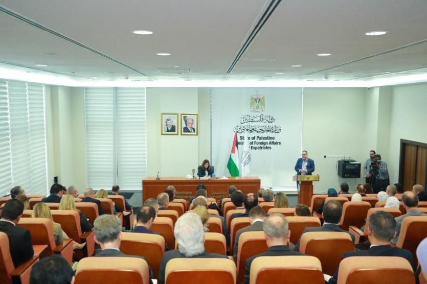 أطلعت وزارة الخارجية والمغتربين، اليوم الاثنين، أعضاء السلك الدبلوماسي المعتمد لدى دولة فلسطين، على المخاطر المترتبة على قرار "الكنيست" الإسرائيلية حظر عمل وكالة "الأونروا"، والتحركات الدبلوماسية.