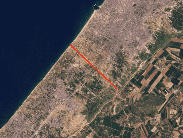 والمنطقتان الأخريان هما محور صلاح الدين (فيلادلفيا) على الحدود الجنوبية بين قطاع غزة ومصر، وشريط يمتد على طول الحدود الشرقية بين القطاع وإسرائيل.