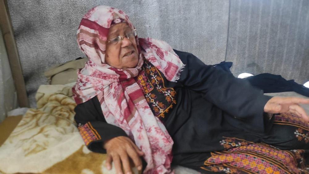 وعن رحلة نزوحها القاسية، تقول أبو العلا إن نجلها اضطر لوضعها على كرسي متحرك "متهالك" والسير بها مسافة لا تقل عن 30 كيلومتر هربا من القصف والقتل وبعد أن هدم الاحتلال منزلها وارتقاء عدد من أفراد عائلتها.