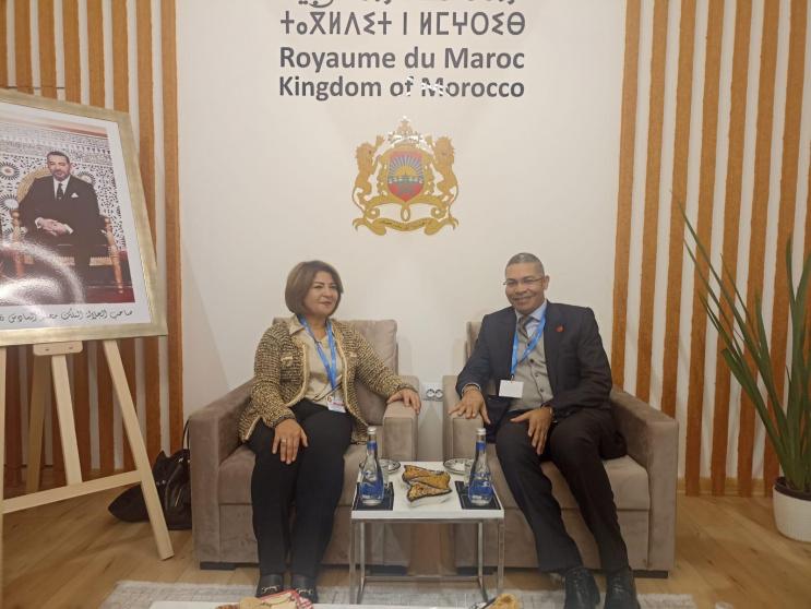 اجتمعت د. نسرين التميمي رئيس وفد دولة فلسطين المشارك في مؤتمر المناخ كوب 29 على هامش المشاركة في القمة المناخية بالسيد زكريا حشلاف وكيل وزارة الانتقال الطاقي والتنمية المستدامة والبيئة المغربي.