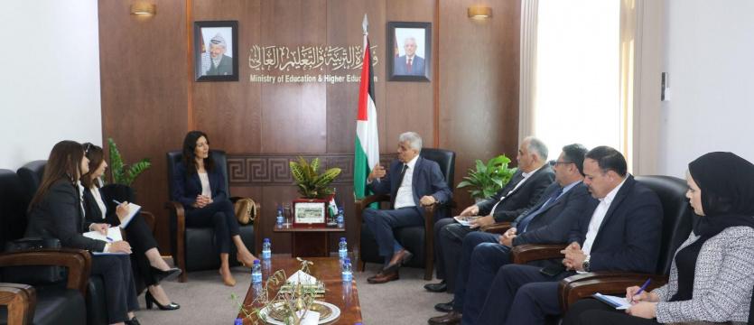 بحث وزير التربية والتعليم العالي د. أمجد برهم، اليوم، مع مديرة مكتب  اليونسكو في فلسطين ليلي نيستاني هيلو، منطلقات التعاون لخدمة التعليم في المرحلة الراهنة ومناقشة واقع التحديات التي يحابهها في كل من قطاع غزة والضفة بما يتقاطع والأولويات والاحتياجات الطارئة.